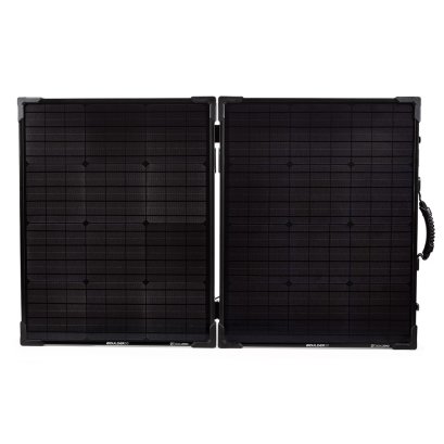 Rugged, durable, and rigid. The Boulder 100 Briefcase Solar Panel is built with strong tempered glass and an aluminum frame with added corner protection for temporary or permanent installation. Composed of two Boulder 50 Solar Panels (100 watts total) chained together and connected by a hinge. Equipped with an integrated kickstand to help get optimal angle to the sun. Included a protective canvas bag for easy carrying. Use with a Goal Zero portable power pack or portable power station to charge your gear day or night.