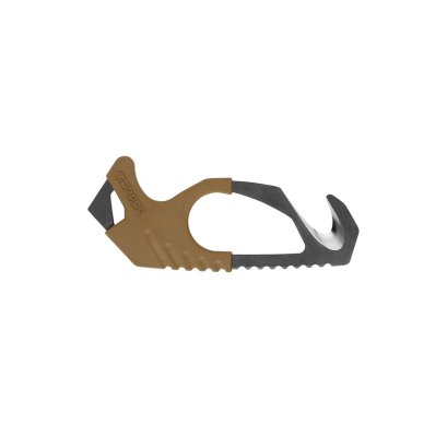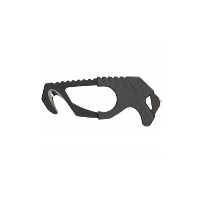 With an innovative design that shields the cutting edge, this tool serves its purpose in emergency situations. The 420HC steel hook knife cuts through anything, while the molded rubber grip and finger hole add stability.