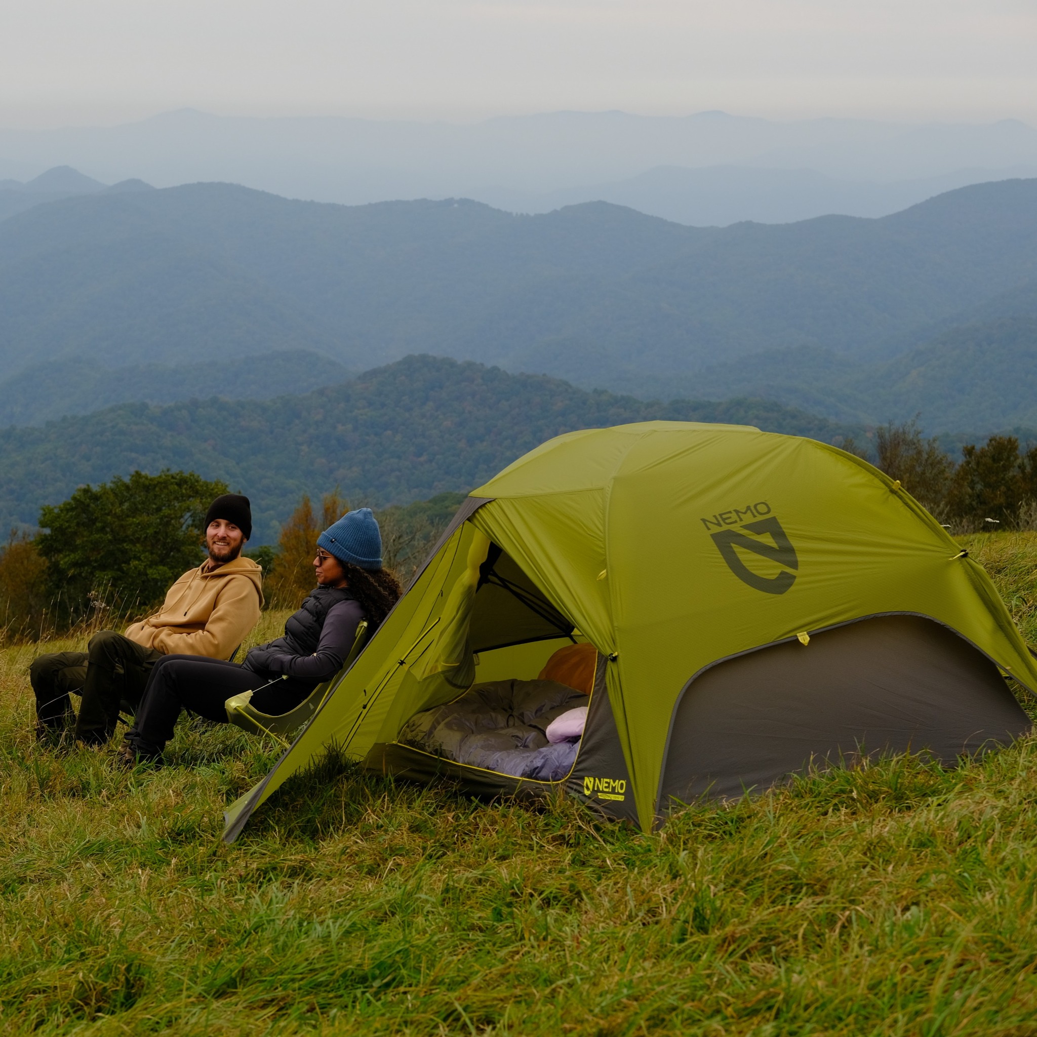 Dragonfly OSMO offers an ideal balance of weight and livability in a freestanding tent, and it’s now made with NEMO’s proprietary OSMO™ fabric for enhanced performance and sustainability. Several years in the making, our OSMO 100% recycled composite fabric is PFAS-free, repels water 4x longer, and stretches 3x less when wet — all while boasting a 20% increase in strength compared to similar fabrics. Dragonfly OSMO features generously sized doors and asymmetrical vestibules for easy entry and access to bulkier gear. Inside, a gear loft and gear pockets keep belongings neatly stored and out of the way, while an overhead Nightlight Pocket™ casts headlamp light with a warm, even glow. Best-in-class, durable Y stakes and Jake’s Foot pole clips are included to make the pitching process even smoother and more secure. Our updated Divvy Cube™ stuff sack allows for easily splitting the weight with a partner and stows more efficiently in your pack.