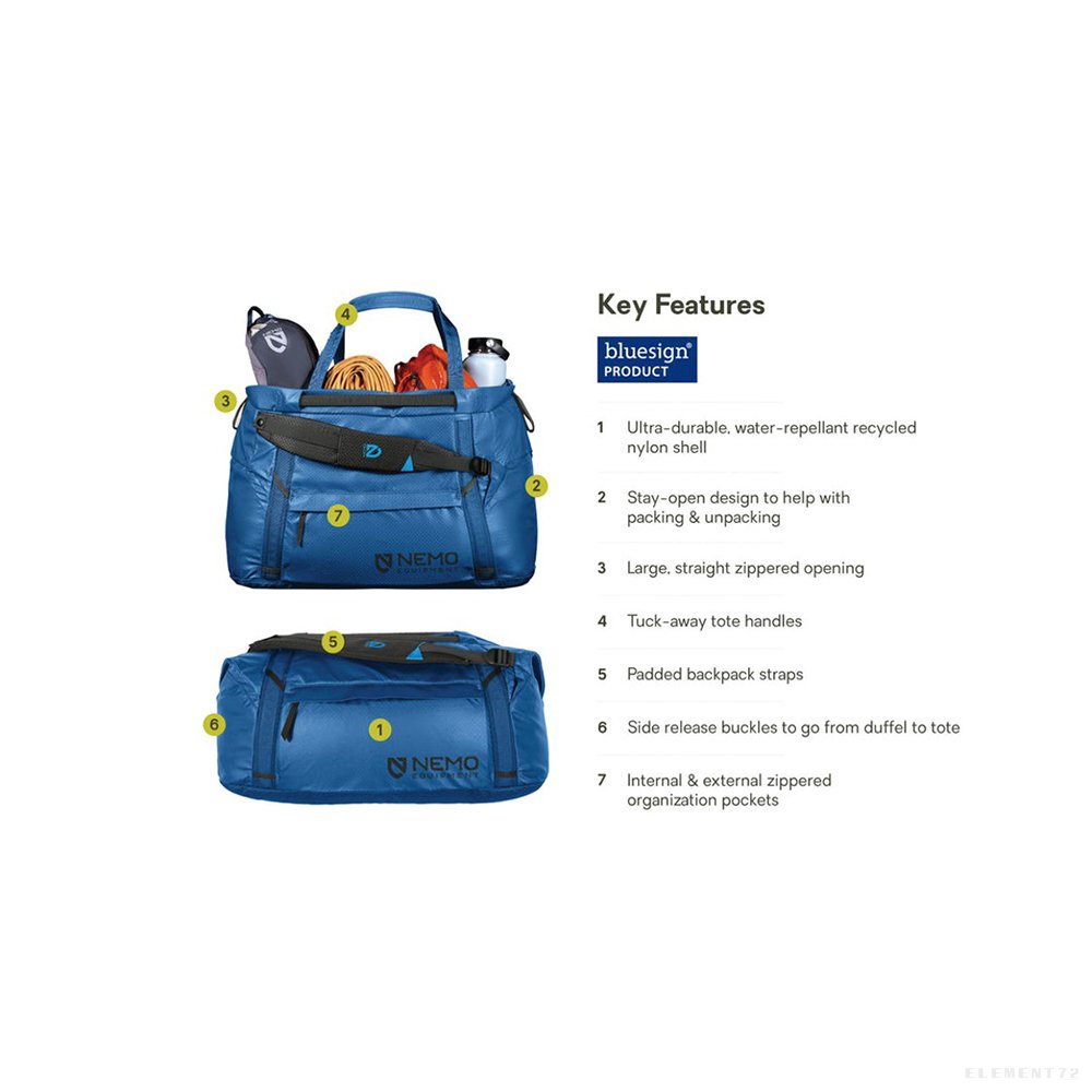 Expands to a 75L capacity in 'tote mode' to easily accommodate even a full week's worth of clothing & necessities.