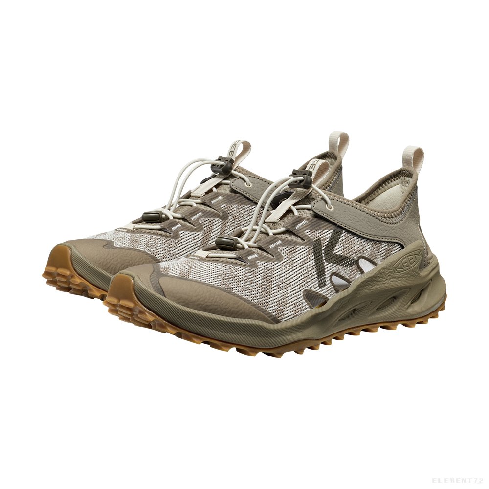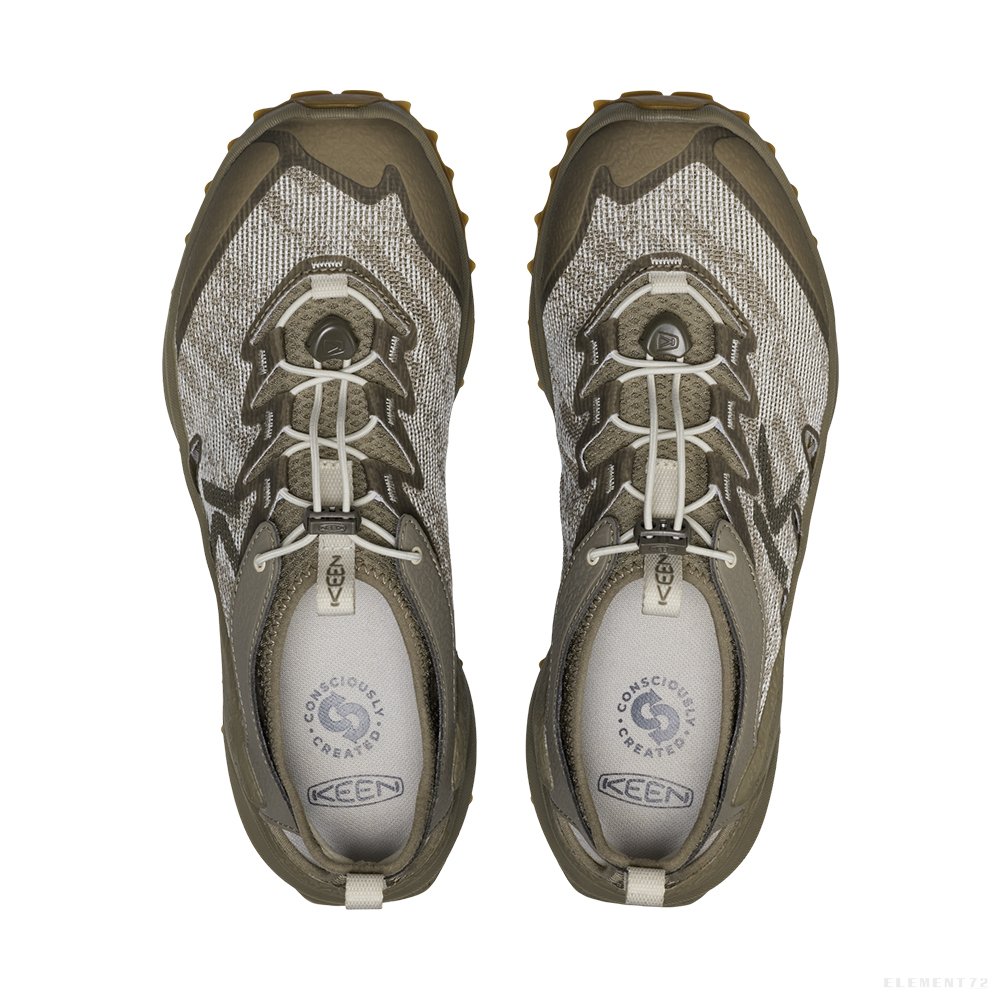 Fast and light performance with maximum breathability. Open-air hybrid versatility with abrasion-resistant woven mesh, responsive cushioning, and technical tread to go farther. Contoured Fit Follows the contours of your foot for a more secure fit. Foot feels comfortably snug. Easy-On Bungee Cinch No-tie lace-lock bungee system creates an instantly secure fit that's easy to adjust. KEEN.ALL-TERRAIN Traction Our higher-traction rubber outsole has multi-directional lugs that dig into dirt, mud, and rock. Eco Anti-Odor Eco Anti-Odor for natural, pesticide-free odor control.