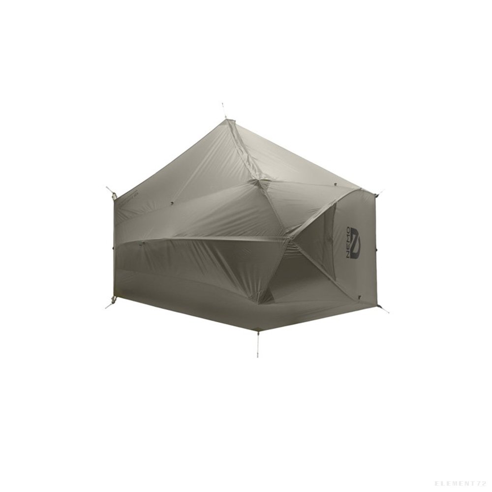 The Dragonfly OSMO™ has long been celebrated for its perfect balance of weight and livability — and now it soars to new heights with a brand-new crossbar design. Taller doors, expanded interior space, and a stronger, more stable frame made from recycled aluminum poles make it the ultimate freestanding tent for adventure. NEMO’s custom Elements™ hardware features a forged hub design that angles the crossbar “wings” upward before tensioning. The Precurve™ system creates a near-horizontal roof, giving you generous headroom throughout the tent, not just at the peak. Lightweight Axial™ corner anchors simplify the rainfly attachment, making setup fast and frustration-free. Inside, Dragonfly OSMO™ is as resilient as it is roomy. Its solution-dyed, PFAS-free proprietary fabric repels water, resists tearing, and stays taut in wet conditions. Designed to withstand harsh winds, it keeps you dry and protected no matter the weather. Generous doors and spacious vestibules make entry and gear access effortless. The included Landing Zone™ storage tub protects gear from mud and can be positioned in either vestibule. A gear loft, multiple pockets, and the Nightlight Pocket™ provide organized storage and soft, even illumination from your headlamp. An updated Divvy Cube™ stuff sack allows partners to split weight and pack more efficiently. Lightweight, durable, and thoughtfully engineered, Dragonfly OSMO™ combines adventure-ready performance with freestanding comfort, giving you the space, strength, and features to truly enjoy the outdoors.