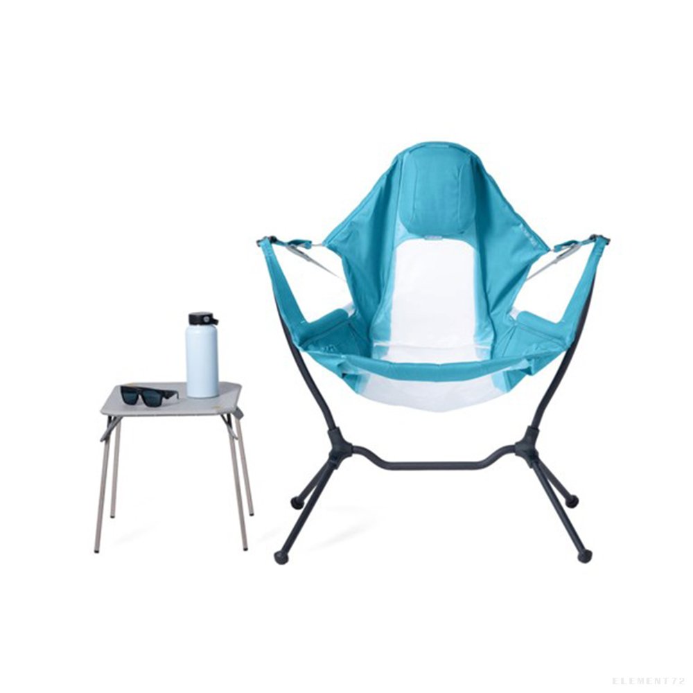 Now better than ever, our Stargaze™ reclining camp chair has been meticulously updated in the pursuit of camp comfort perfection — while maintaining all the features fans know and love. Ease of use has been improved with a strategic, more intuitive pole design that cuts down on setup steps and makes assembly a snap. Plus, the generously curved upright poles are engineered to more comfortably accommodate broad shoulders and create extra elbow room, while a larger padded headrest can extend well beyond the backrest and support users of all heights. The swinging seat and responsive auto-recline mechanism remain the Stargaze standouts, offering a hammock-like experience with a smoothly tilting backrest. Simply lean back to take in a perfect view of the night sky or catch a moment of rest while the water’s boiling! Designed for a low center of gravity, the chair offers unmatched stability on surfaces from sandy beaches to rocky terrain (or even spongy soccer fields). Flexible pouches on either side can accommodate sunscreen, a cell phone, or keys. When it’s time to pack up, Stargaze easily disassembles in just a few steps and neatly fits into the included carrying case until the next adventure.