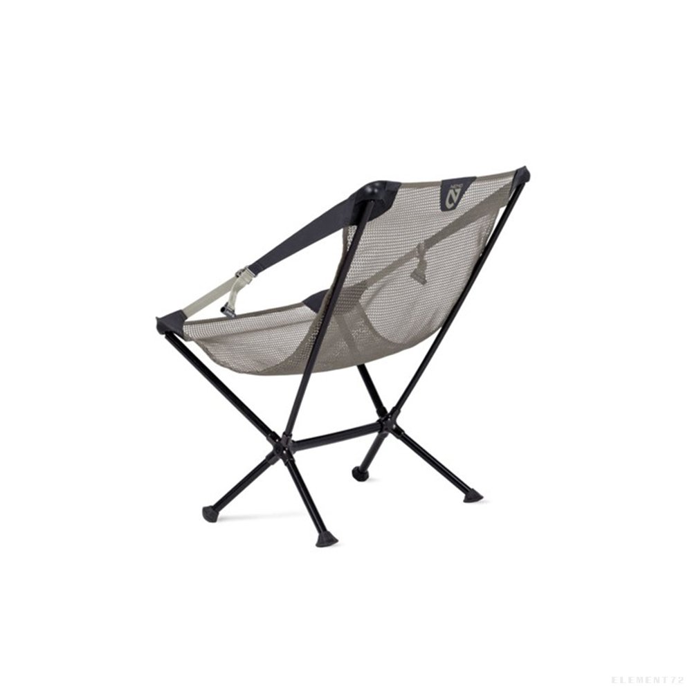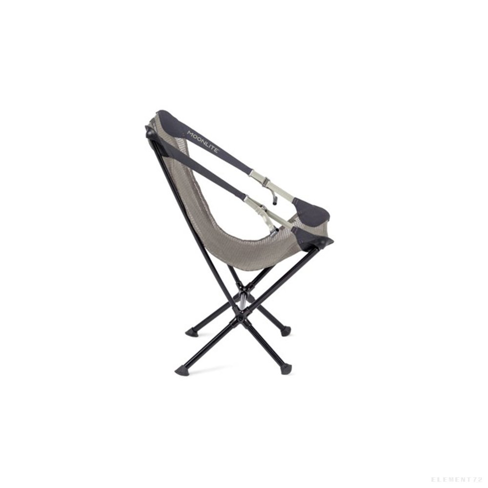 Moonlite™ brings comfort to the backcountry — and backyard, beaches, and more. Easy to set up and barely noticeable in your pack, it’s the go-to adventure chair that boasts a major bonus: adjustable reclining support. Moonlite has a unique pulley system built into the armrest straps that allows you to easily adjust your sitting position on the fly. Simply pull on the custom buckles and lean back to go from upright at dinner to stargazing after dark. (Pull again while sitting up to return to upright support.) The chair’s engineered frame uses oversized tubes paired with forged aluminum hubs to create exceptional strength and stability despite the chair’s light weight. Its custom-engineered mesh seat stretches to accommodate and support a variety of body types, offering seamless and supportive comfort. This unique seat attaches to the frame with satisfying ball-and-socket connectors that rotate and align with your body to avoid any uncomfortable pressure points. True to our mission of sustainability, Moonlite uses 100% post-consumer recycled materials for the webbing and mesh, while the reclining hardware and seat mesh are bluesign® approved.